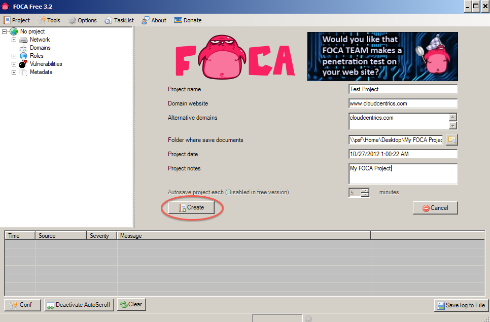 3. The first thing after launching FOCA is to create a New Project.